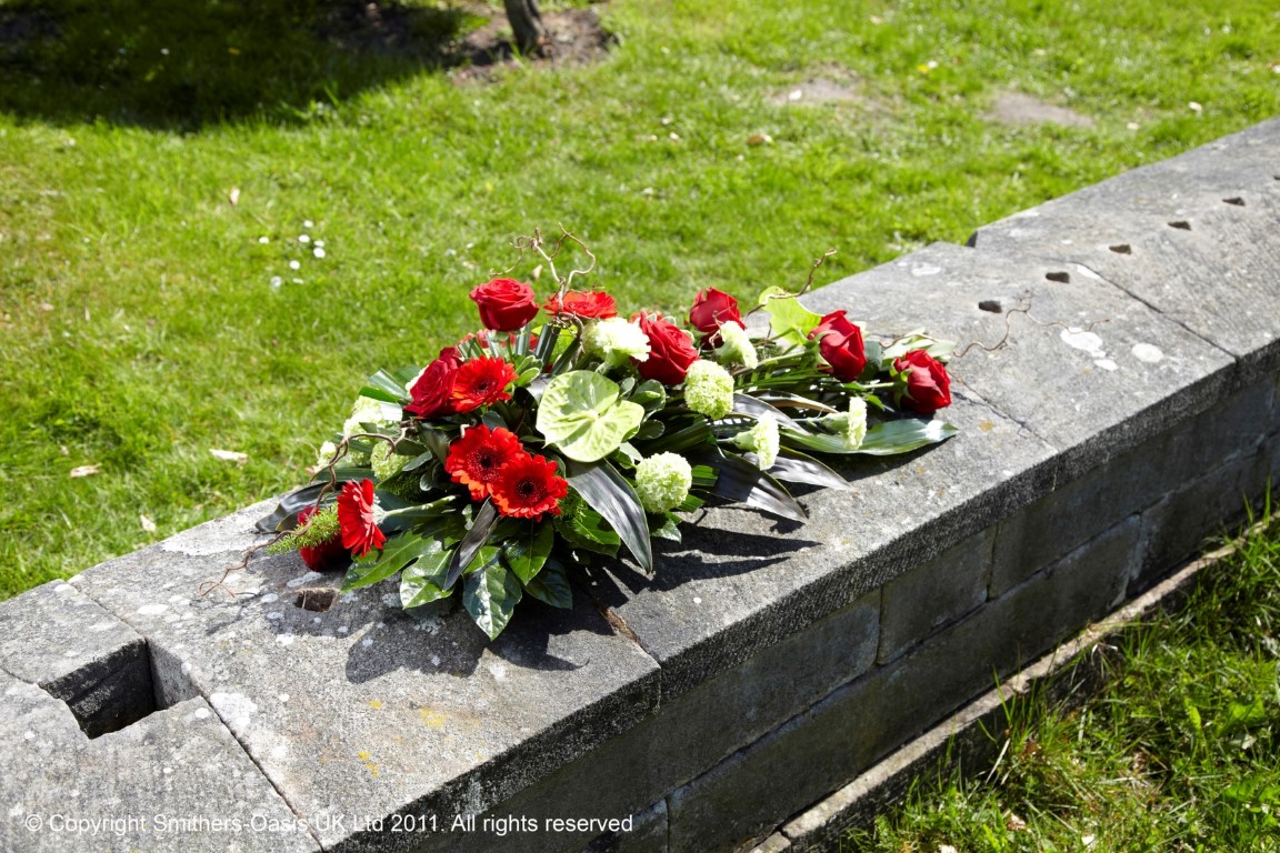 Our single ended spray design is ideal for placement on top of the coffin as a solitary piece or as one of your chosen designs. The dimensions are approx 3ft L x 2ft W, the design can be made in your choice of colours and size using only the freshest seasonal flowers and foliages chosen by our florists from stock. Complimenting designs which can either sit on top of the coffin with the single ended spray or at the side, front or rear of the hearse would be a wreath, posy, basket or bespoke piece or lettering