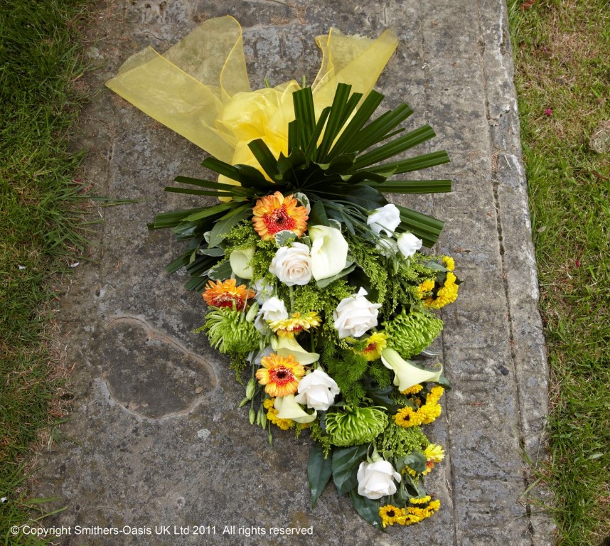 This sumptious design consist of flowers such as eustoma, crysanthemum blooms, calla lily, solidago, germini , crysanthemum spray and roses with complimenting foliages and larger tropical foliage to create a collar to the sheaf. With a complimenting ribbon in your choice of colour. This design will be made up by one of our expert florists with the most top grade flowers and those that are in the prime of their seasonal availability.
