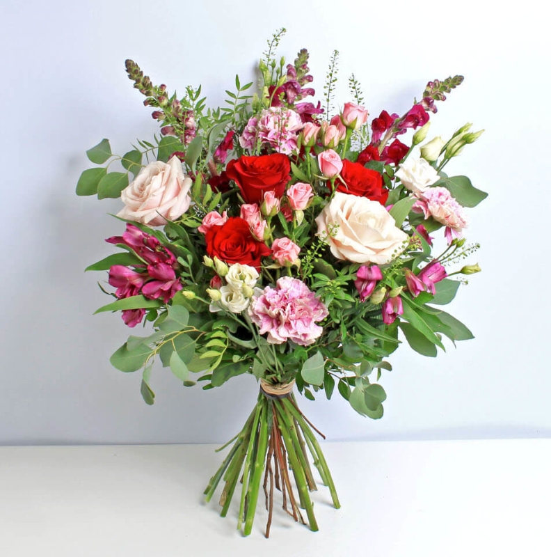 Raspberry Red the most beautiful bouquet created to represent peace and love with the most stunning flowers that blend in different colours.