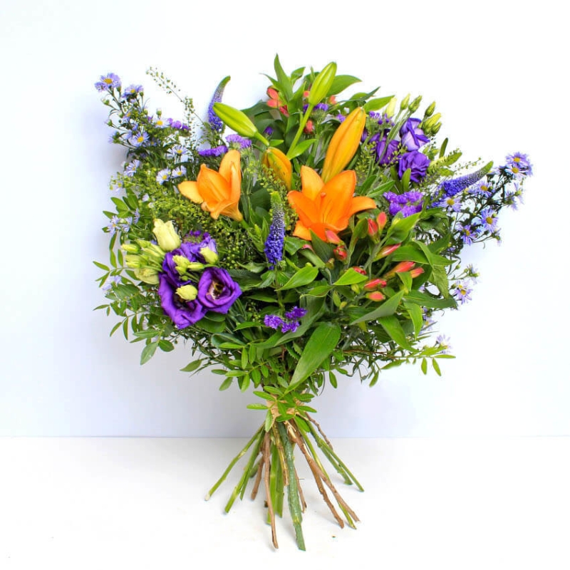 This beautiful design will be hand tied and delivered in its own box with water. While we will endeavour to stock all blooms pictured, some may vary due to availability but will be suitably substituted.